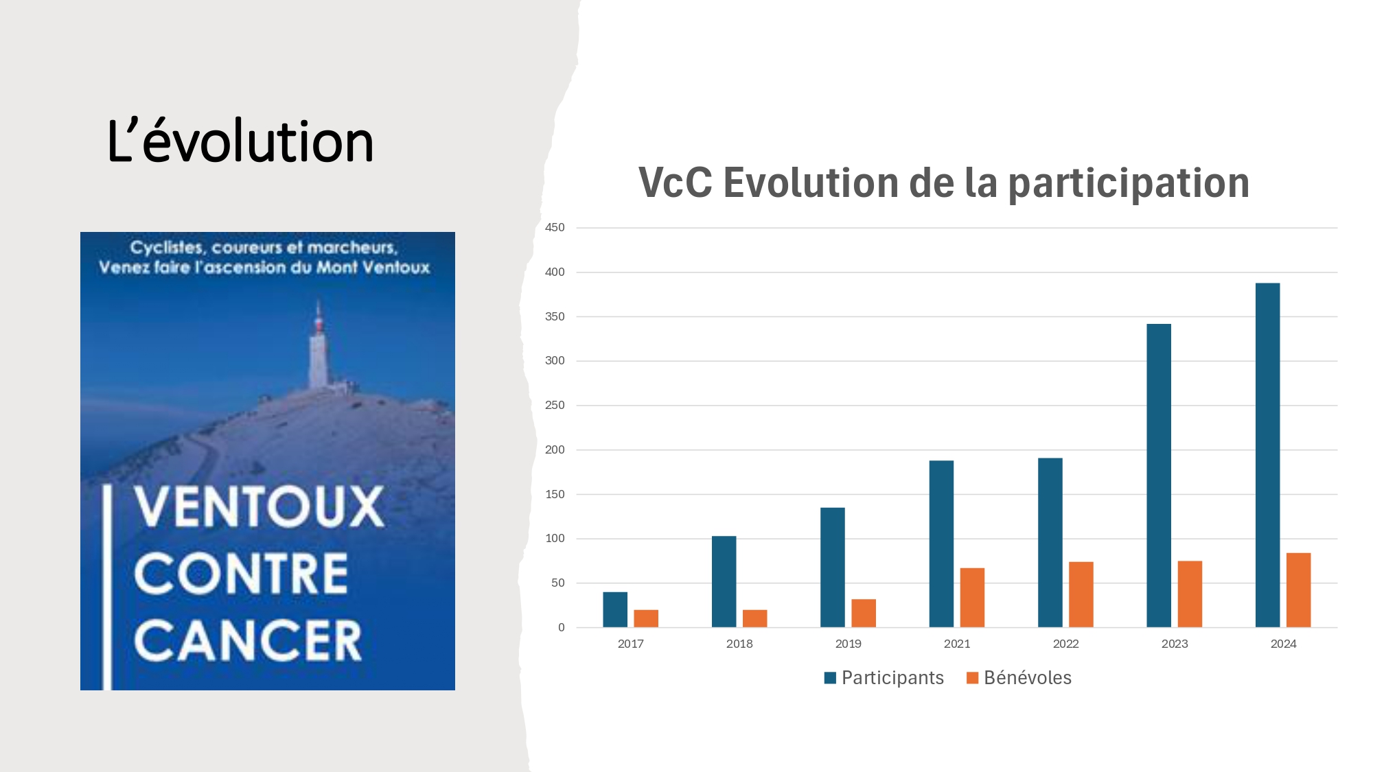 Depuis sa création en 2017, Ventoux contre Cancer a eu un succès grandissant chaque année. Nous avons ainsi pu soutenir des projets de soin et de recherche pour les bénéficiaires qui ont besoin de notre dépassement pour lutter contre cette maladie et apporter les meilleures techniques de soins aux patients.