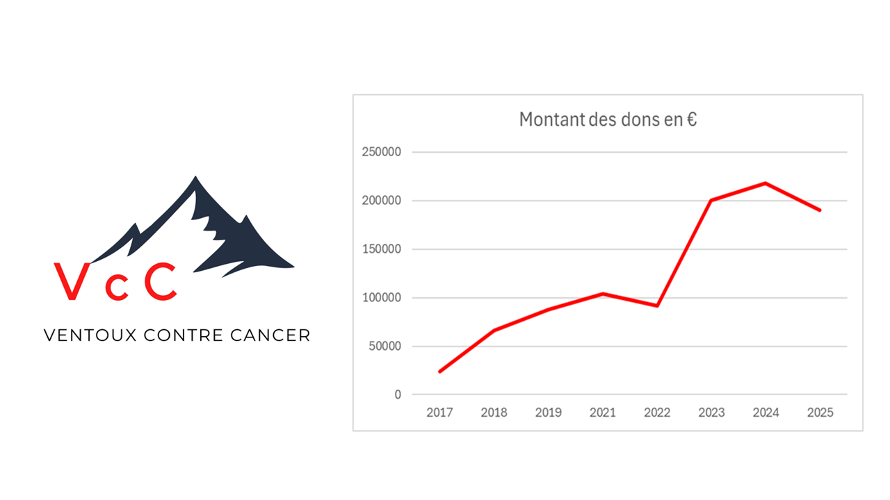 L'association Ventoux contre Cancer, loi 1901, est née en 2017 d'un constat déchirant : chacun d'entre nous est, de près ou de loin, touché par le cancer.
